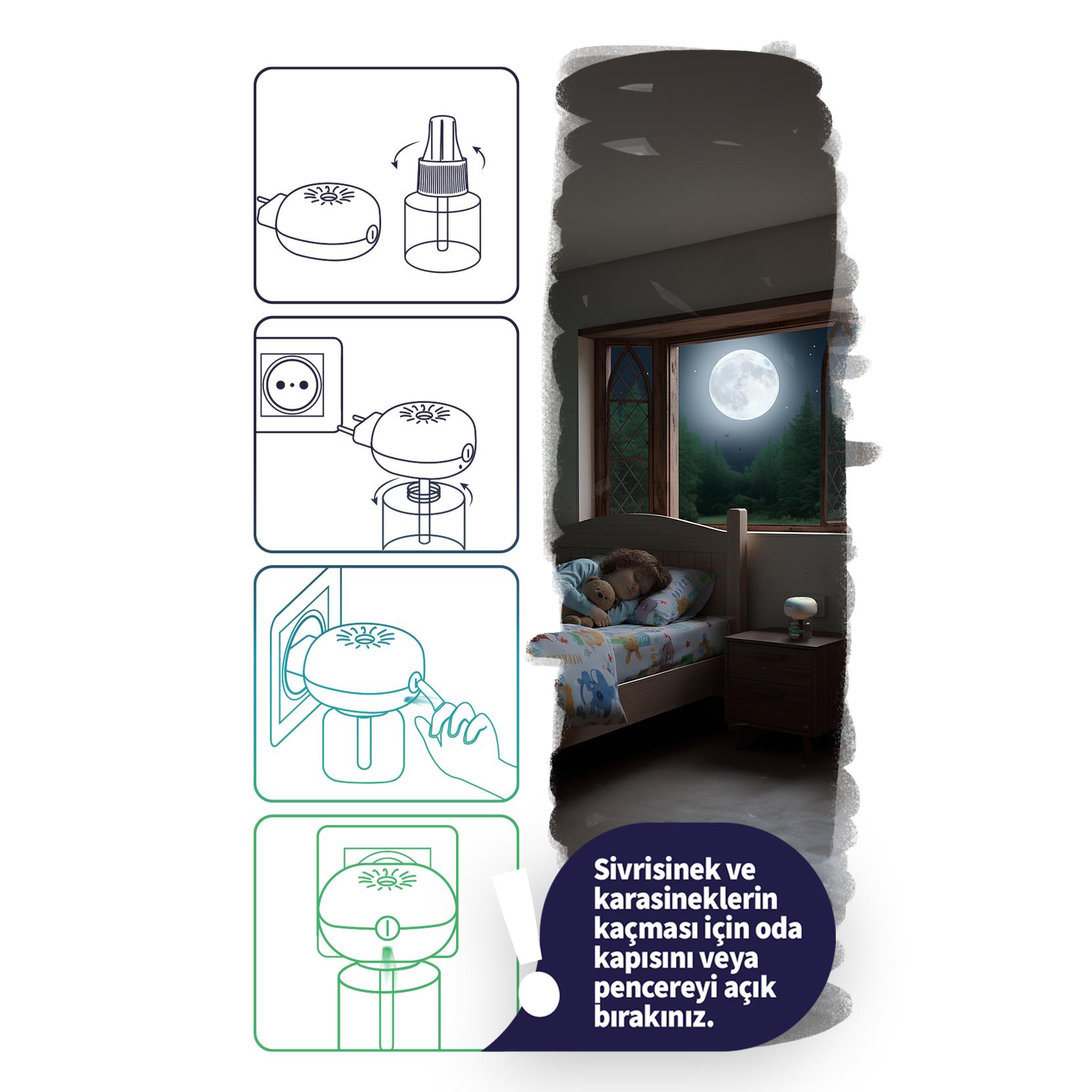 | Sivrisinek . | 25 ml | Buharlaşma | Günde 8 saat 30 gece |