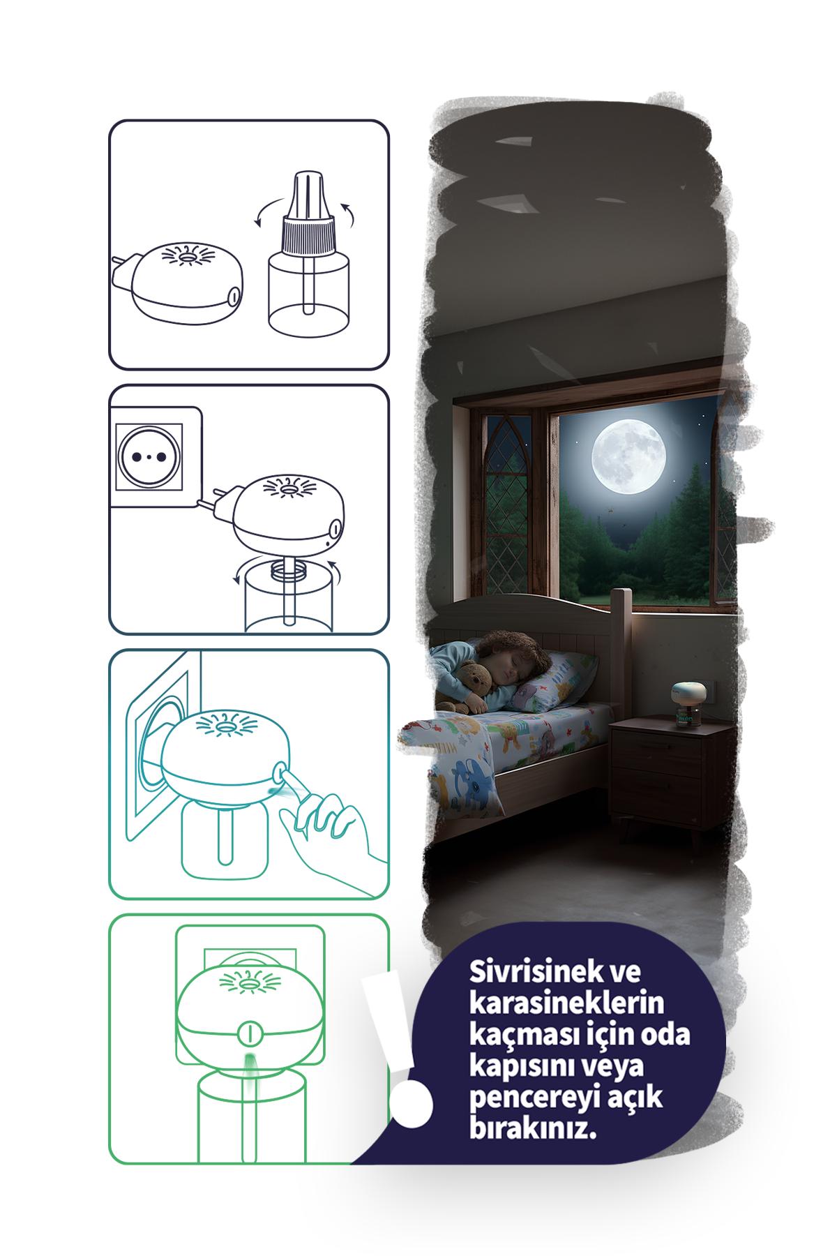 | Sivrisinek . | 25 ml | Buharlaşma | Günde 8 saat 30 gece |